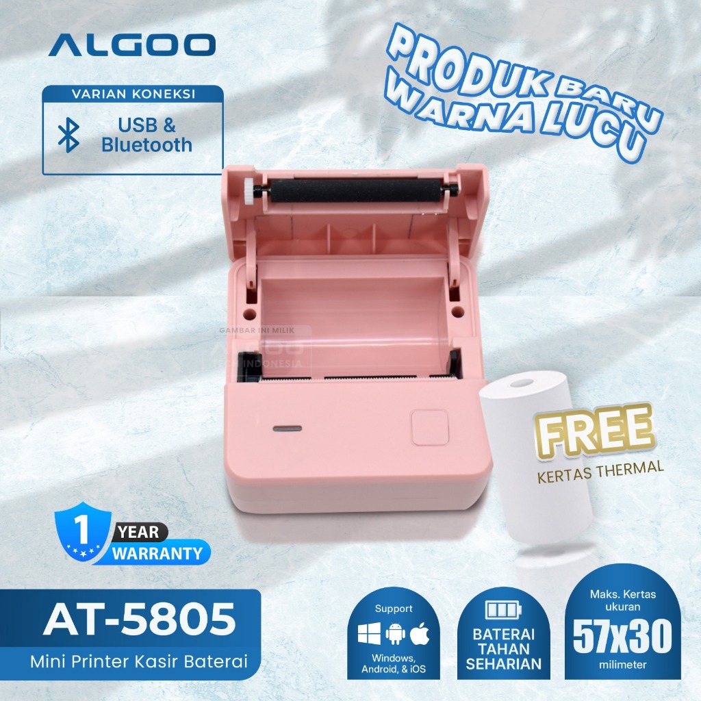 ALGOO AT-5805 Printer Thermal Bluetooth 58mm Cetak Struk