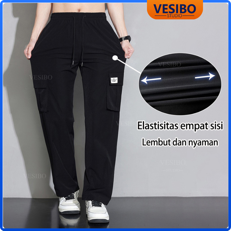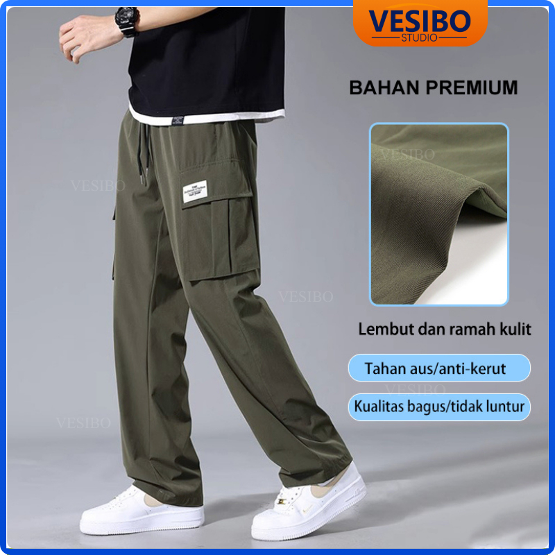 Celana Cargo Pria Longgar Pants Fashion Korean Style Designer New Styles Cargo Pants Hitam