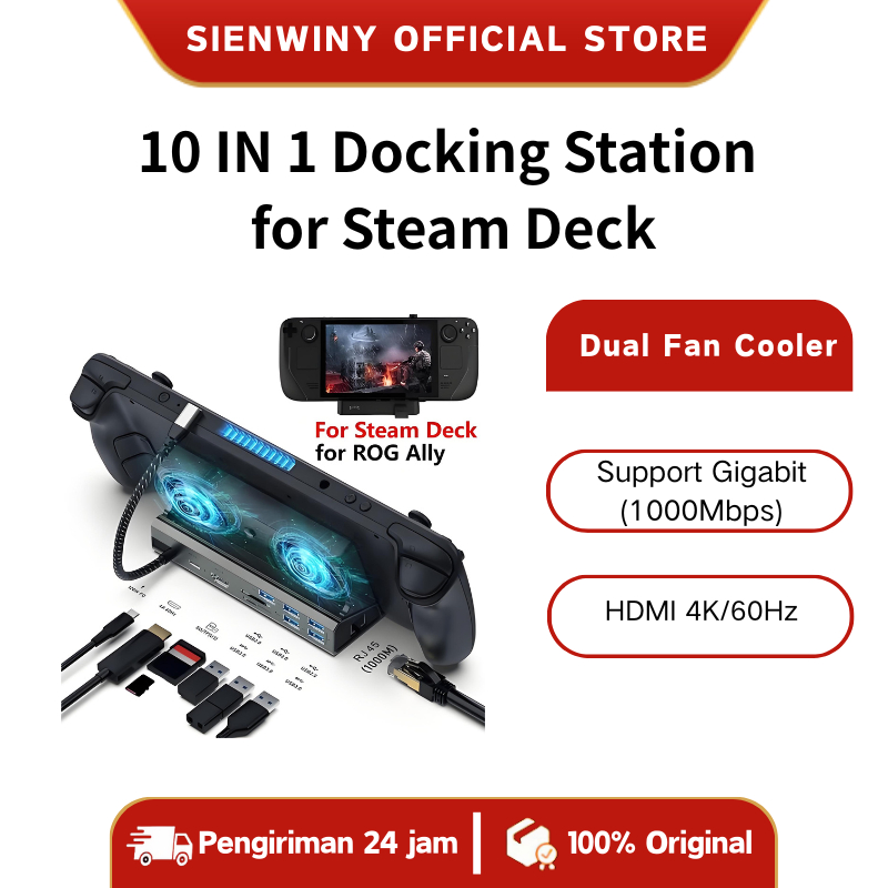 【SIENWINY】 10in1 Docking Steam Deck Rog Ally Switch Station Dengan Dual Cooling Fan Untuk Steam Deck FLY