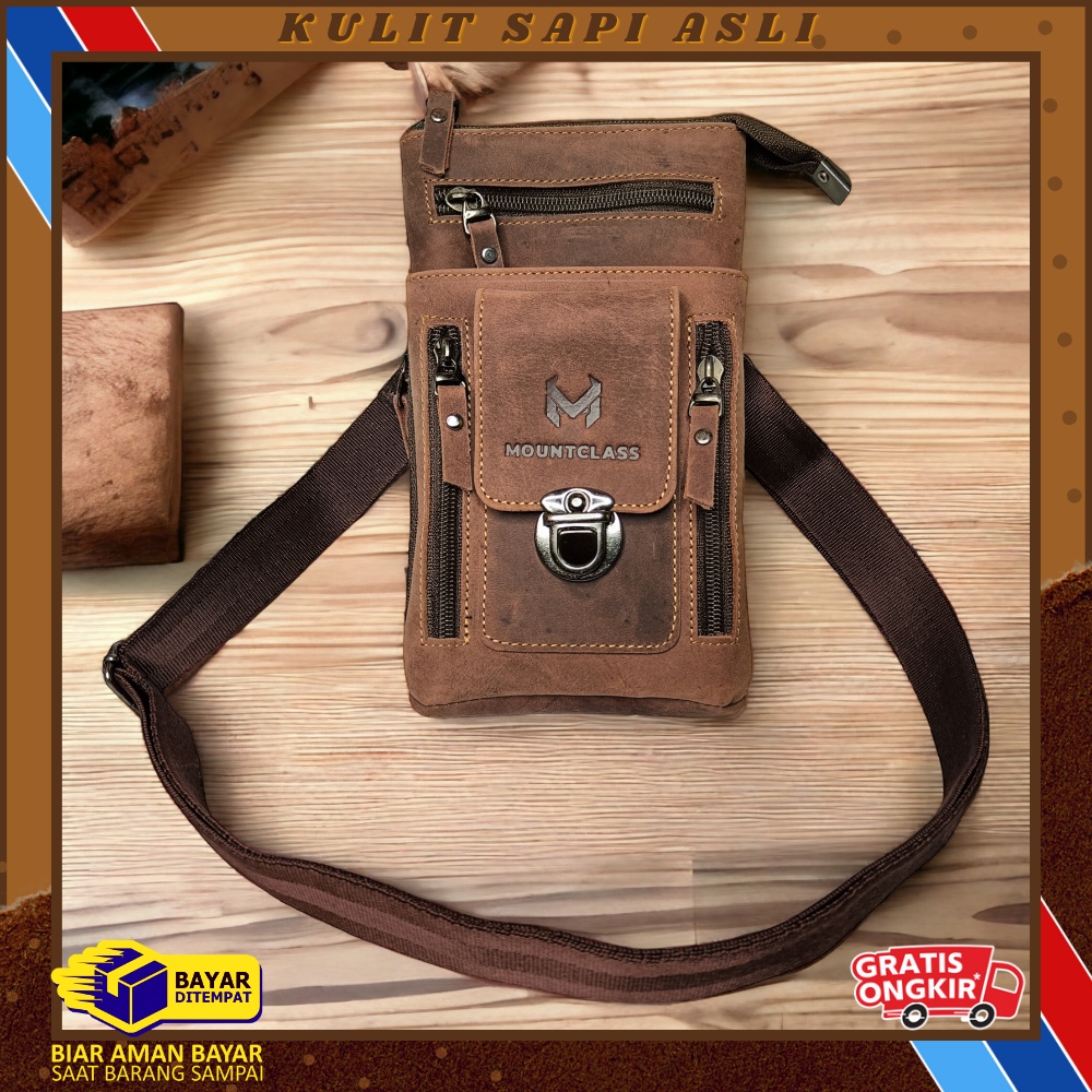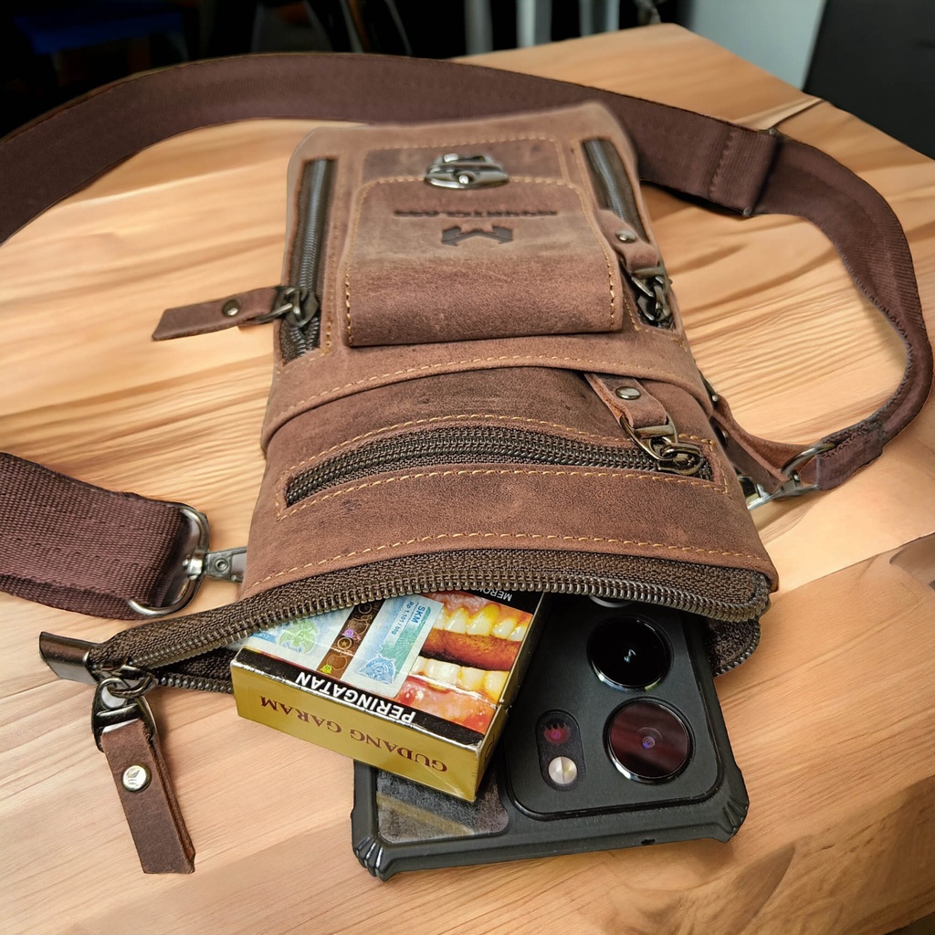 Tas Pinggang hp Selempang tas Kecil Pria 100 Kulit Sapi Asli - Vio Sling Bag