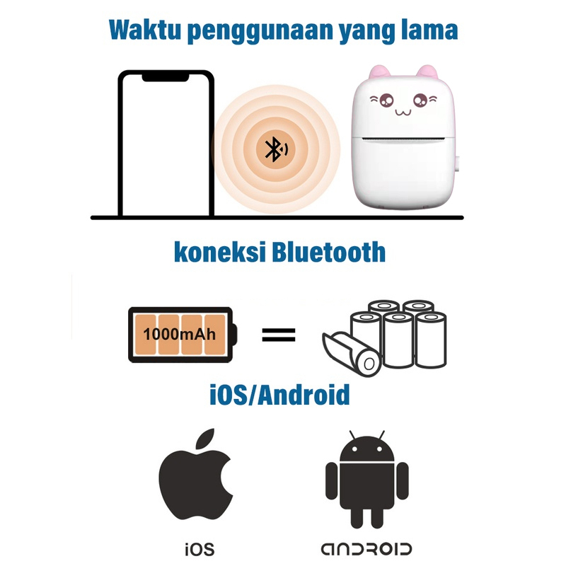 Alat Print Mini Portable Thermal Printer Bluetooth Po Printer Mini Portable Memo Receipt Paper Bluetooth