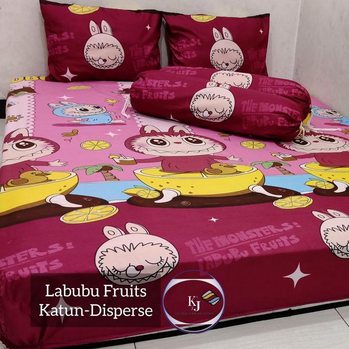 SPREI SET MOTIF LABUBU SKY BLUE -LENGKAP SARUNG BANTAL DAN GULING KAIN LEMBUT ADEM TDK LUNTUR.BLUE RED PURPLE BLACK - SKY BLUE LBB, 120X200 - NO.3
