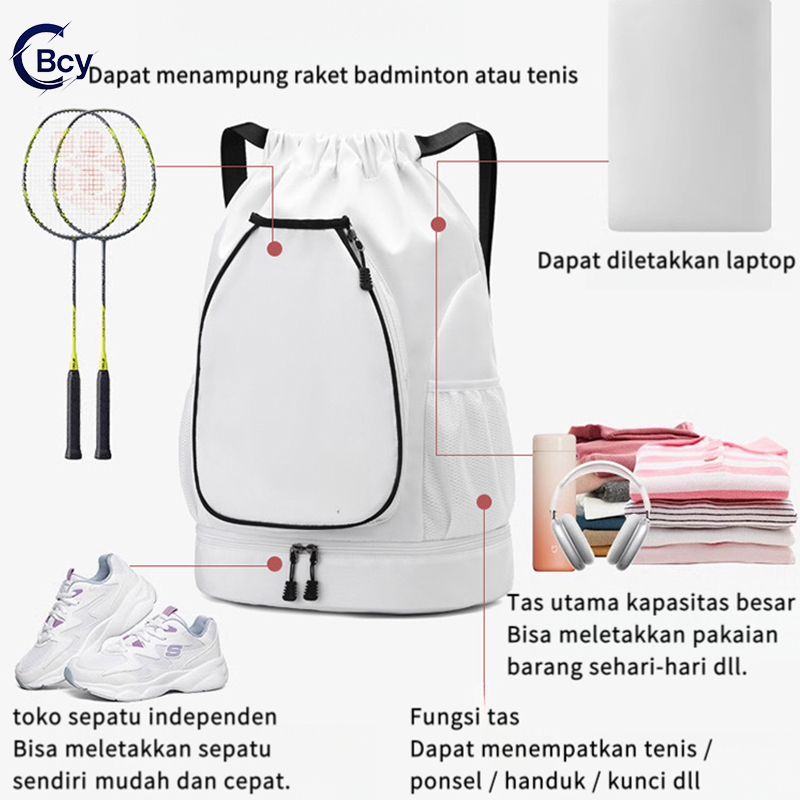 CBCY Tas Ransel Raket Bulutangkis Sederhana Dengan kompartemen sepatu Nilon Anti Air Ringan