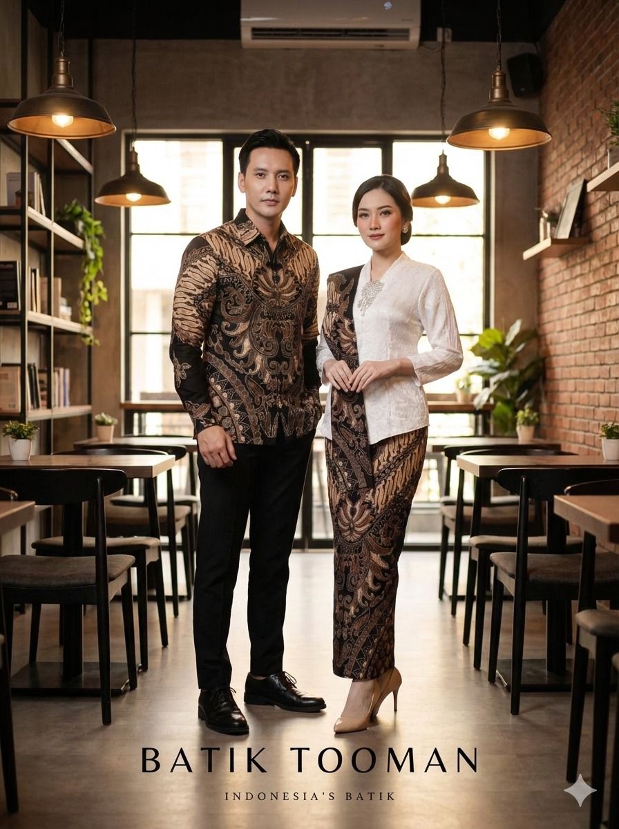 GURDONO GURDONIA Black Choco Cream Couple Sarimbit Rok 2 Lapis & Kemeja Batik Slimfit Warna Hitam Coklat Krem Bahan Katu