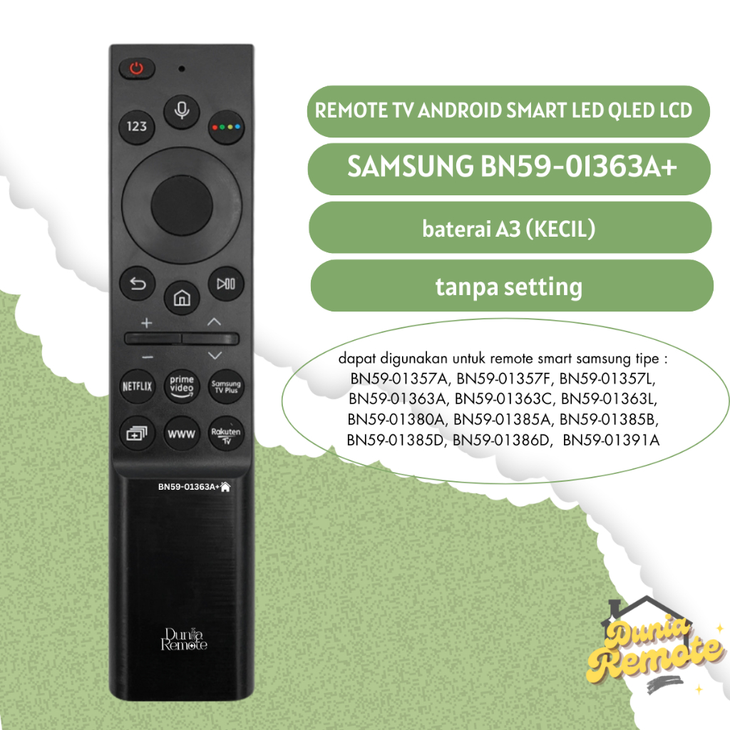 Remote Remot TV SAMSUNG Android Smart LED LCD Smart Magic BN59-01363A Netflix PrimeV Rakuten UHD 4K QLEDg NON VOICE