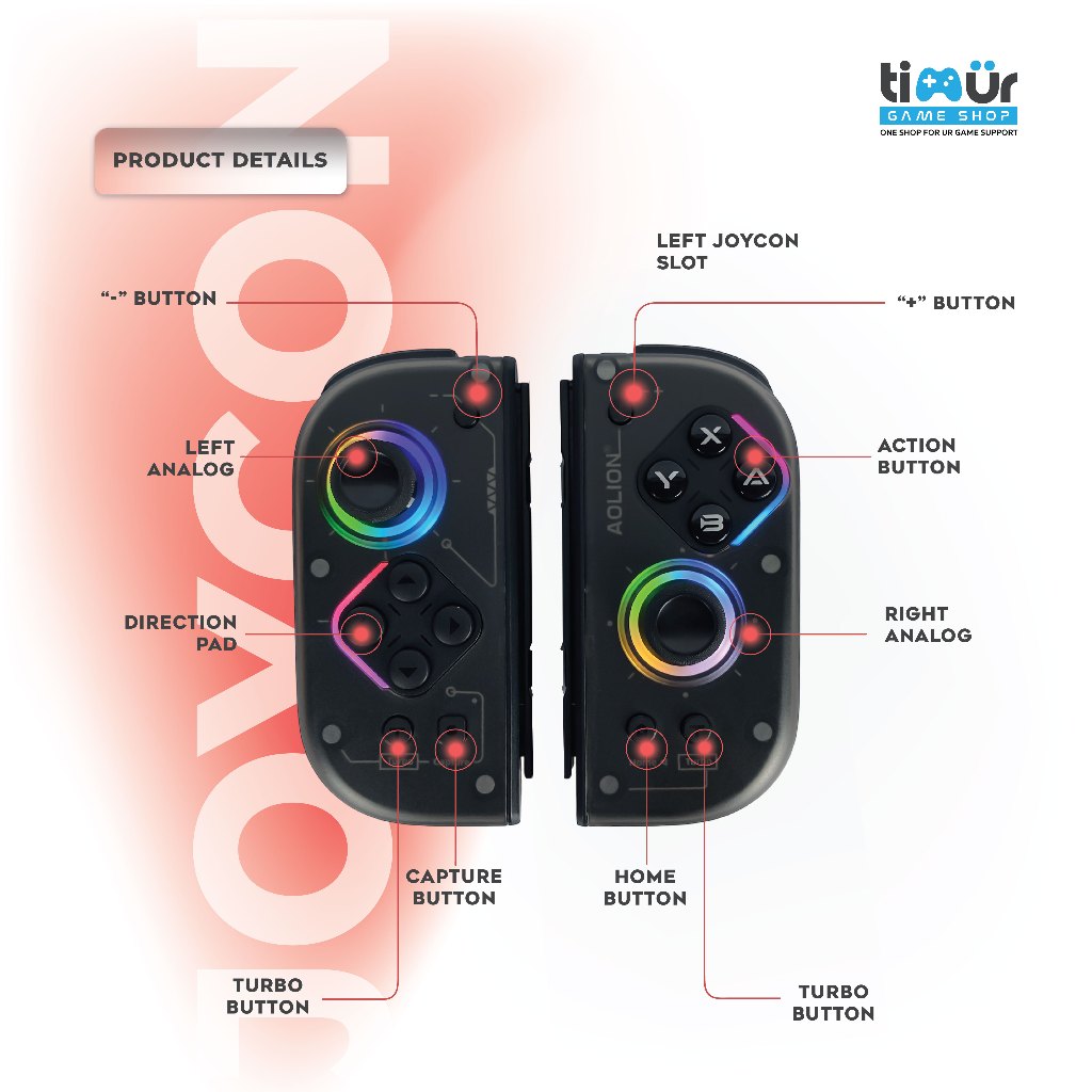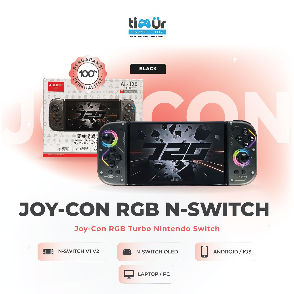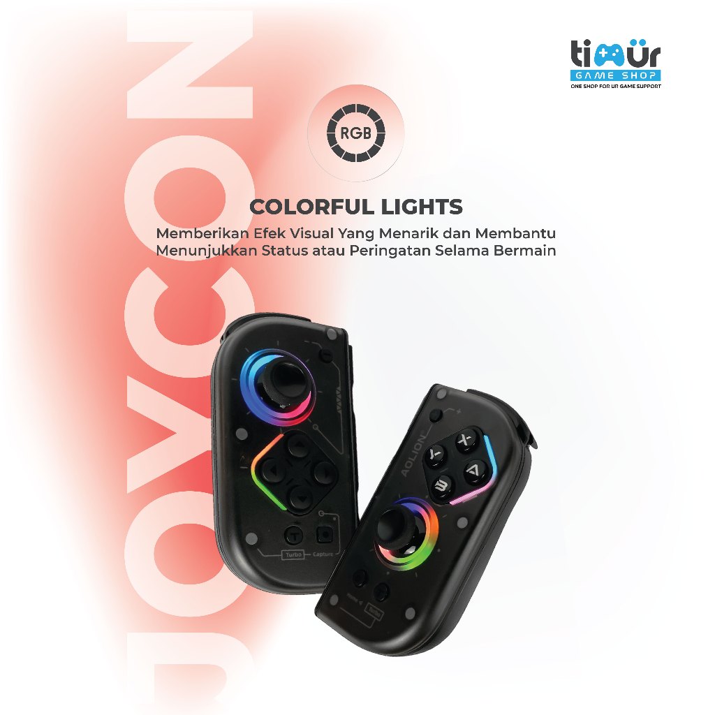 Aolion Joy-Con Joycon JoyPad Controller Stik Stick (L/R) RGB Turbo Android IOS PC Nintendo Switch V1 V2 OLED Black - Timur Game Shop