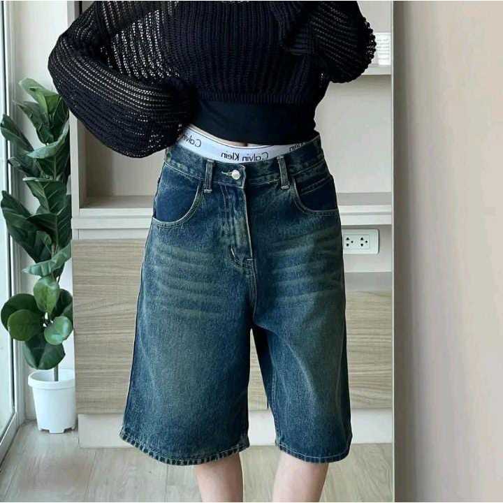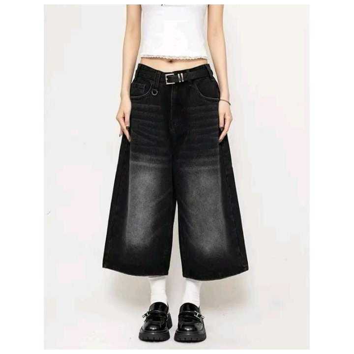 Jeans Jorts Pants Baggy Skena Retro Street Style Jeans Short Wisker Pria dan Wanita Korean Style