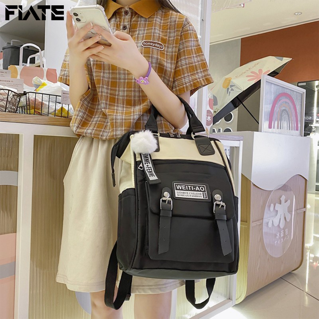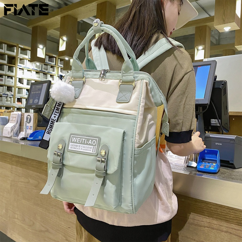 FLATE Tas Ransel Sekolah Wanita Tas Sekolah Korean Style Waterproof Tas Ransel Laptop 14 inch