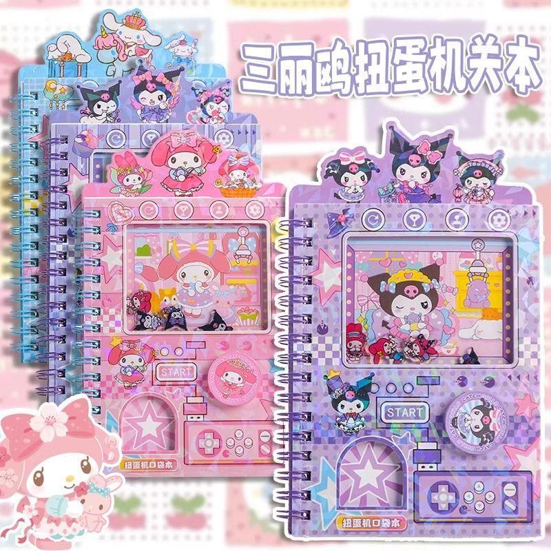 Notebook Mini Motif Kuromi Cinamorol Melody dan Capybara Dengan Mainan Mesin Gachapo Arcylic / Buku Tulis Lucu