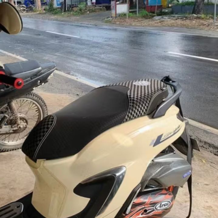 Kulit Jok Motor Arvicreations ASSC Carbon x Motif Kotak V2 Mode 3 Sudah Dijahit Tinggal Pasang / Kulit Jok Motor Matic L