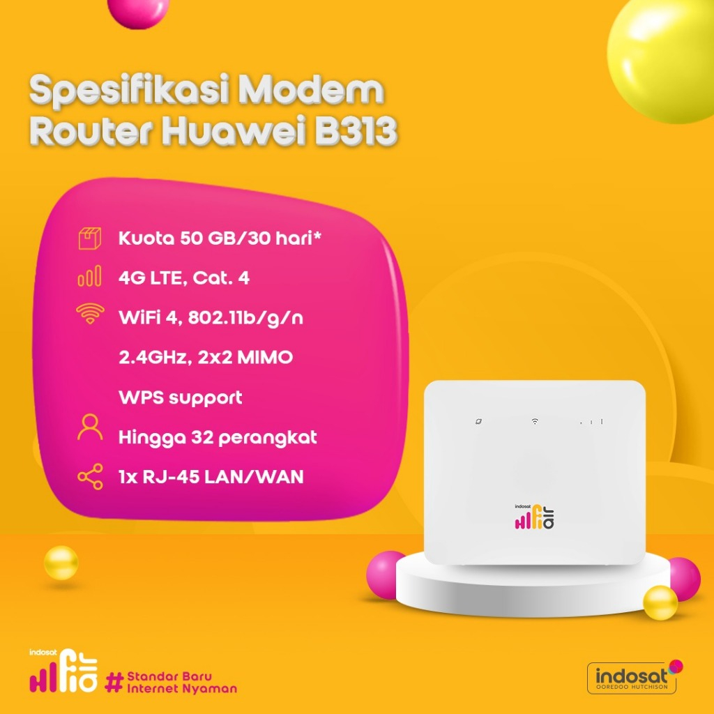 Indosat Hifi Air Huawei B313 Wifi Modem Internet 4G LTE 50Gb