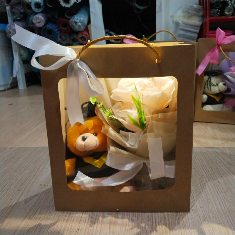 Buketgarden - Buket Tas Hampers Wisuda Tas Graduation ( Tas + Boneka + Buket Bunga ) Cewek Cowok Hadiah Ulang Tahun Hamper Bucket