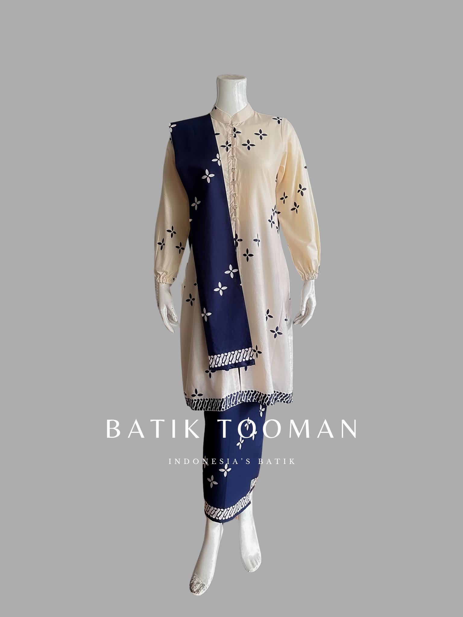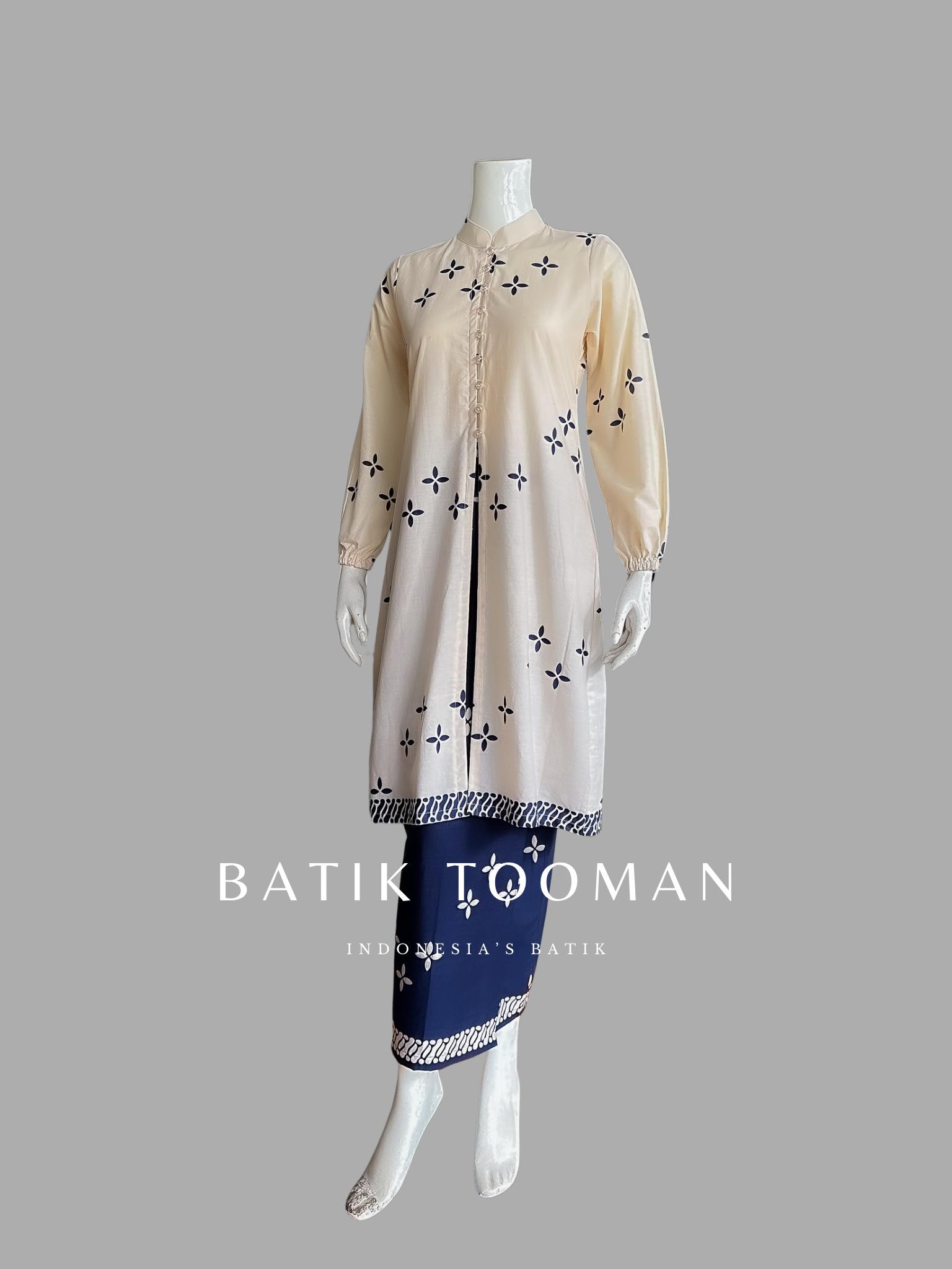 ALRUMI Brokenwhite Navy Setelan Kebaya Terpisah Rok Tunik Batik Katun Primisima Warna Dongker Krem Cream