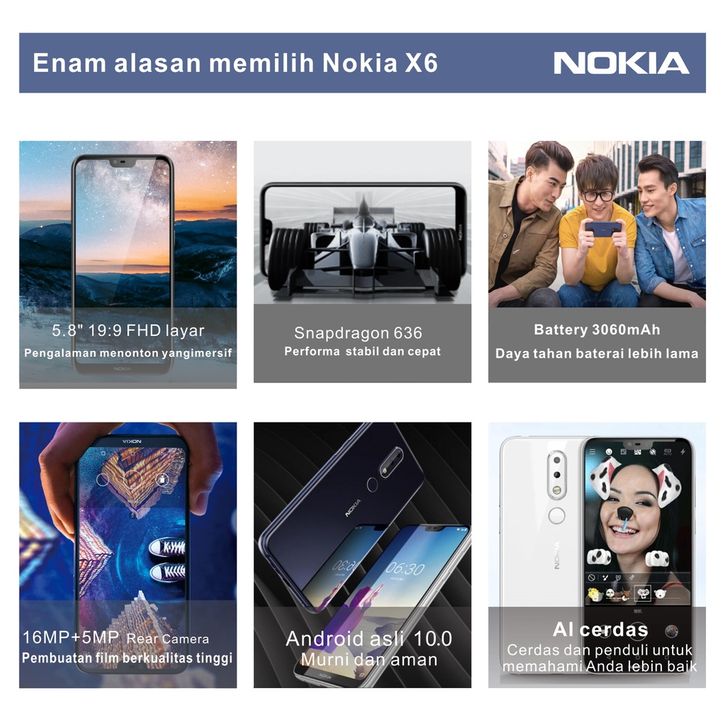Nokia X6【6.1plus 】6GB+64GB dual sim mulus garansi resim type-c hp murah nokia android 2025