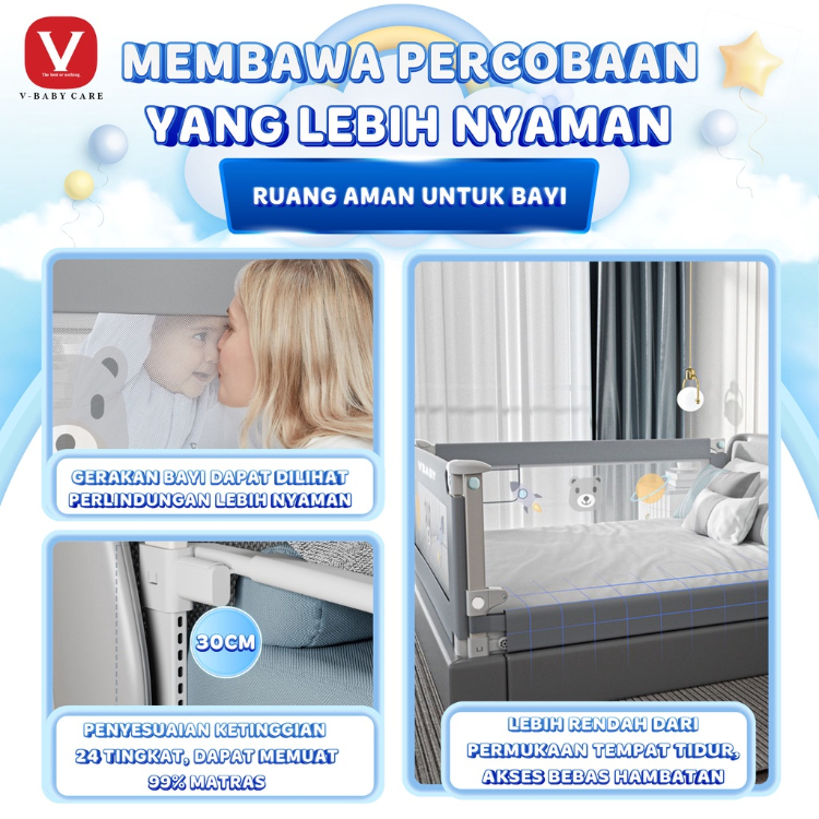 Bedrail Baby Bed Rail Safety Guard Bedguard Fence Extra Tall Pembatas Pengaman Pagar Kasur Bayi Tempat Tidur