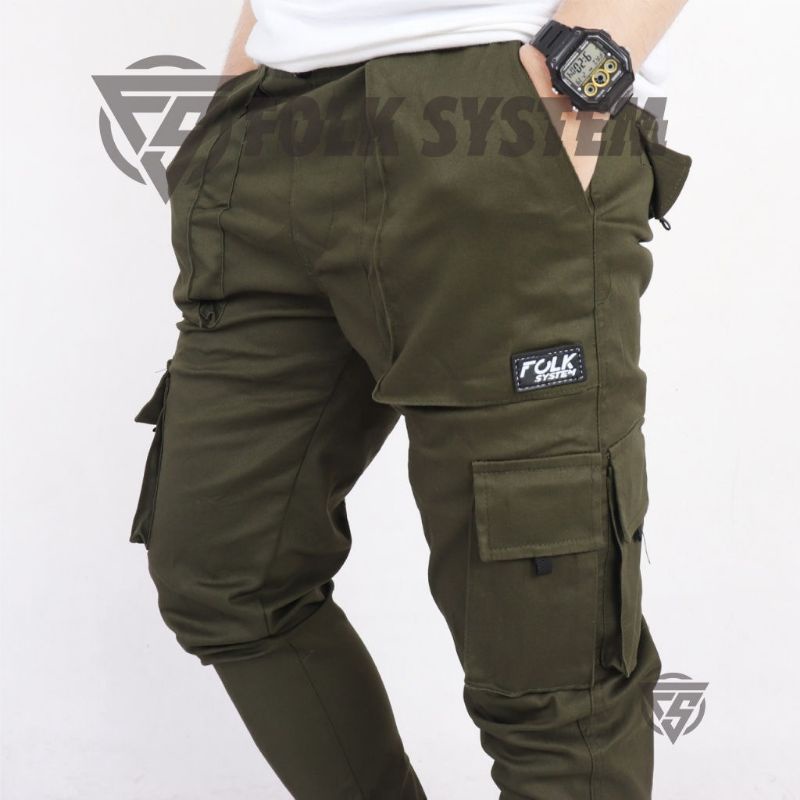 Celana Panjang Chino Jogger Cargo Pria FOLKSYSTEM Terjangkau Murah