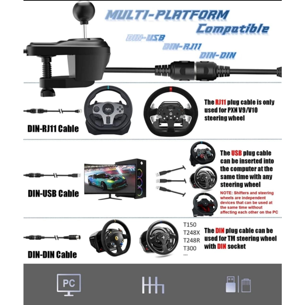 PXN A7 Gaming Steering Wheel 6+1 Gear Shifter for PC Windows Original PXN