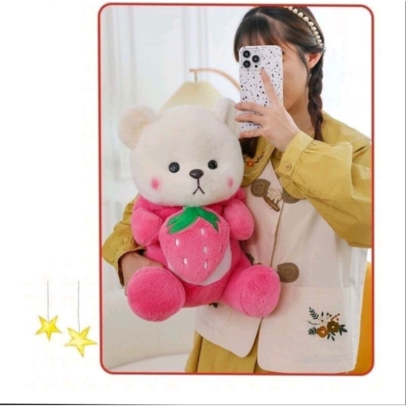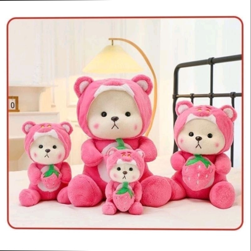 boneka lucu mewah bear lotso strawberry bahan yelpo A lucu dan imut 30cm berlebel sni