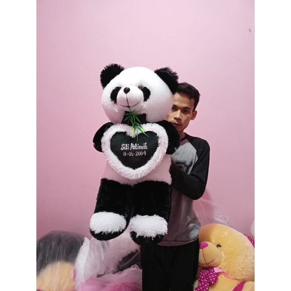 Boneka Beruang Panda Hitam Putih XL SNI Costum Nama