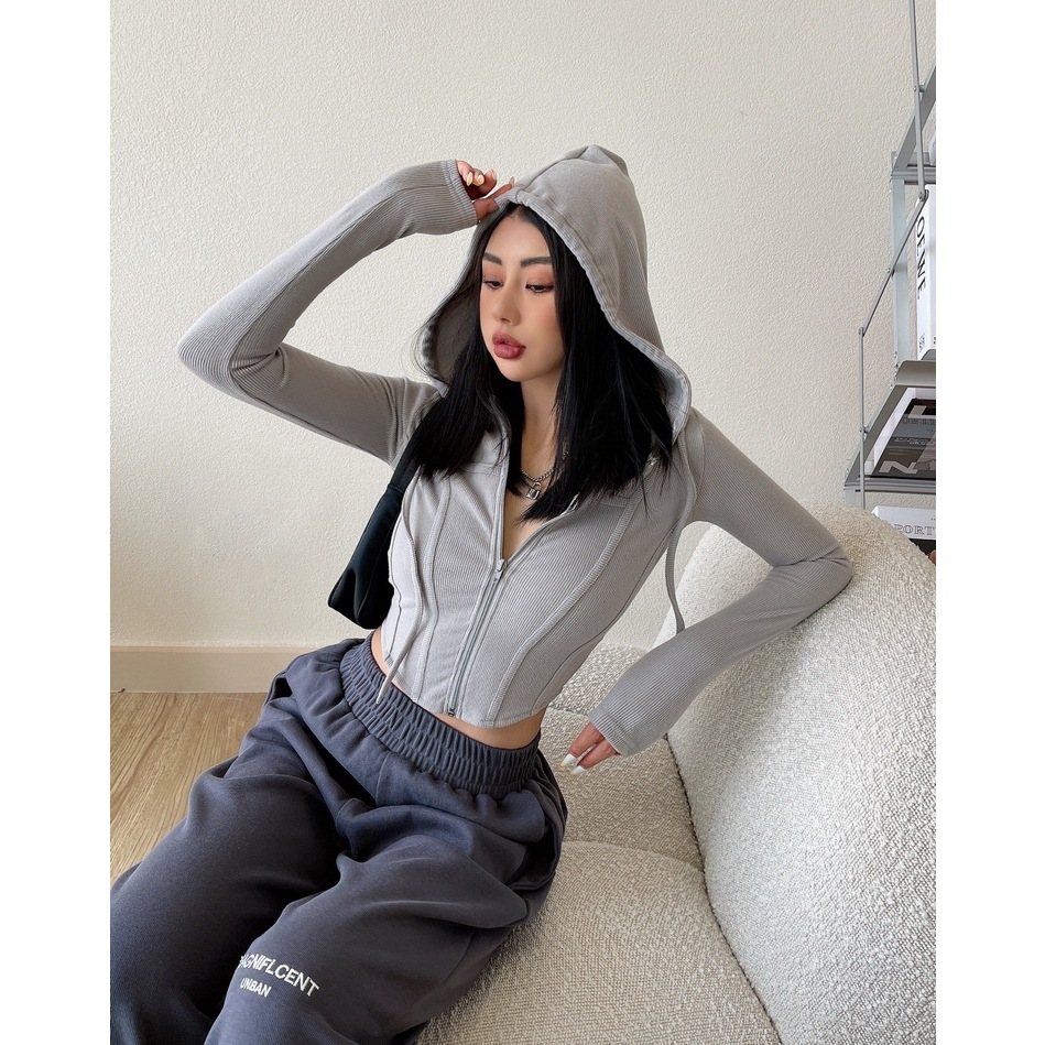 Hoodie ZIPPER BASIC Sweater Jaket Zipper Crop Top Hoodie Wanita Kekinian Fashion Outfit Ootd