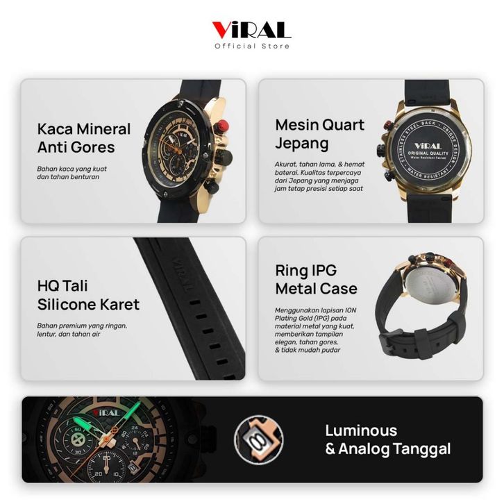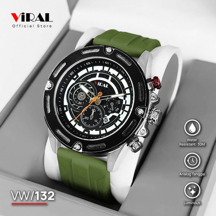 RK - ViRAL Watch - Jam Tangan Pria Japan Quality 132 Anti Air Water Resistant 30M Karet Stainless Steel