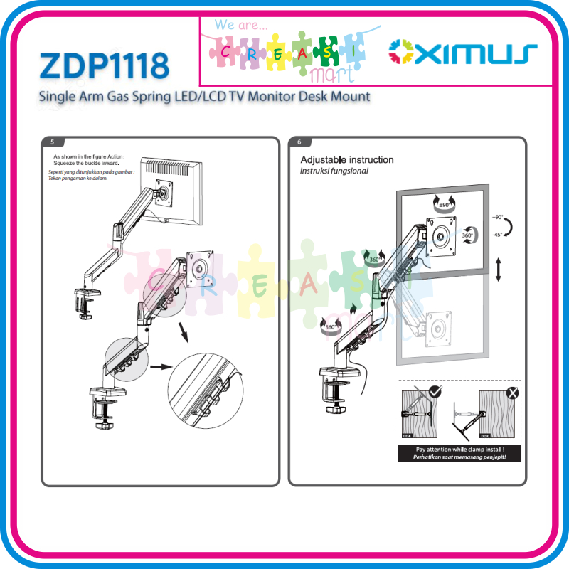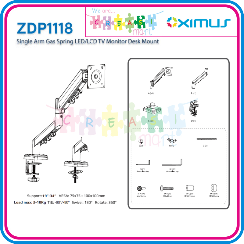 Oximus ZDP1118 Bracket Meja Single Arm Gas Spring Desk Mount Monitor/TV/LCD/LED VESA Maximal 100x100