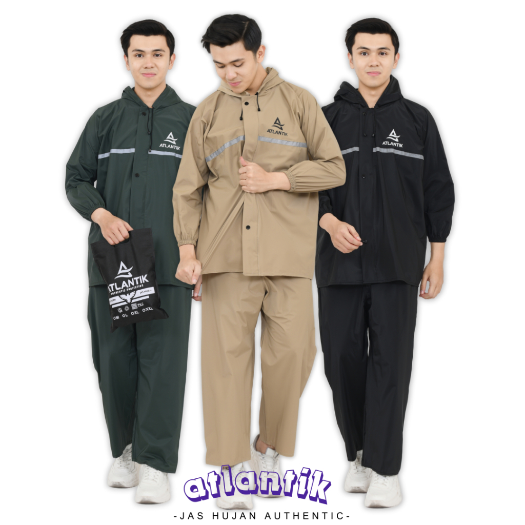 Jas Hujan Setelan Pria Dewasa Mantel Hujan Tebal Elastis Original Atlantik