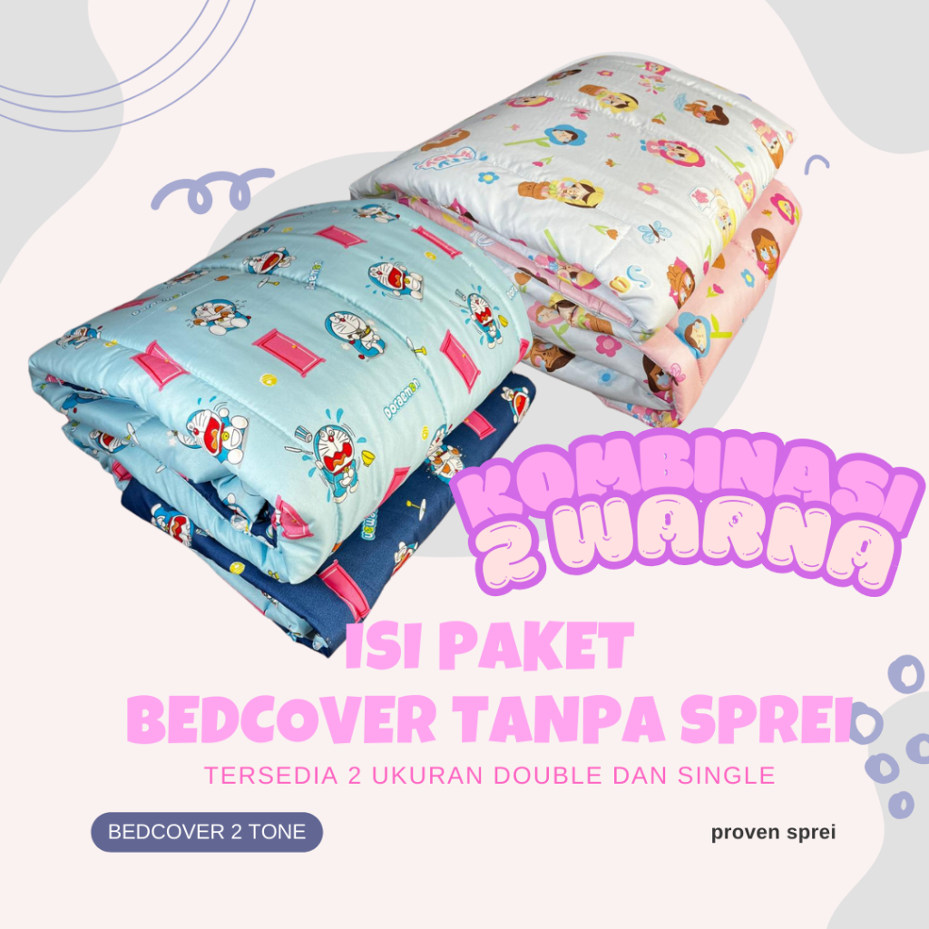 Bedcover Two Tone - Kombinasi 2 warna Mikrosilk tersedia ukuran besar dan kecil