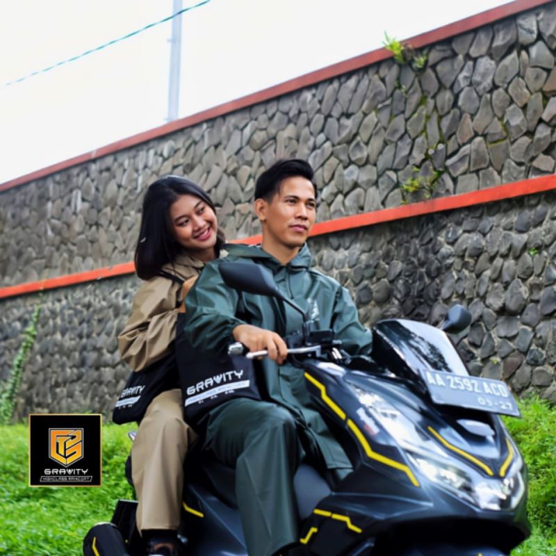 JAS HUJAN RAINCOAT SETELAN ATASAN DAN CELANA PRIA WANITA DEWASA BAHAN ELASTIS ANTI REMBES BY GRAVITY