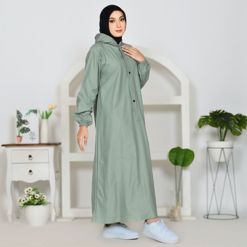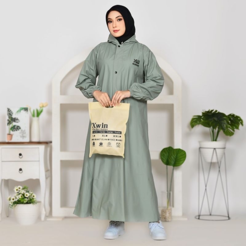 Xwin Raincoat Wanita, Jas Hujan Gamis Syar'i Berbahan PVC Tebal Kuat Lentur Anti Rembes Waterproof Tahan air dan Kedap Air / Mantel Hujan Muslimah ukuran M L XL Jumbo Tipe Jubah , baju dan Rok