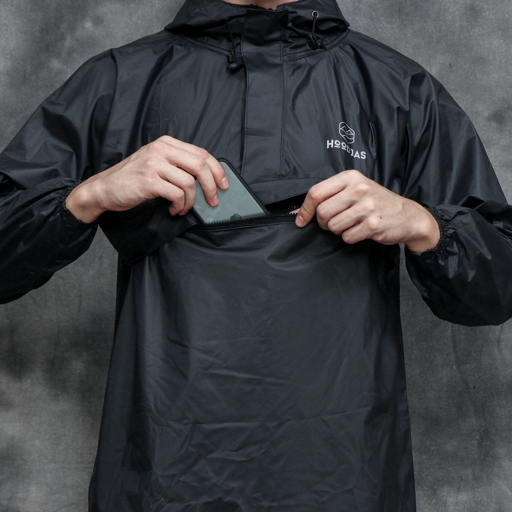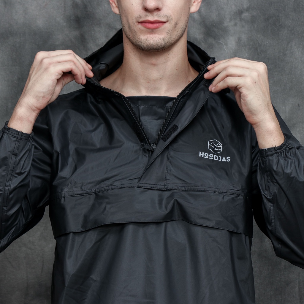 HOODJAS / KANGAROO RAINCOAT / Jas Hujan Kangguru / Anti Bocor / Jas Hujan Saku Kangguru / Pria Wanita Dewasa Anti Air / Bahan Waterproof HITAM
