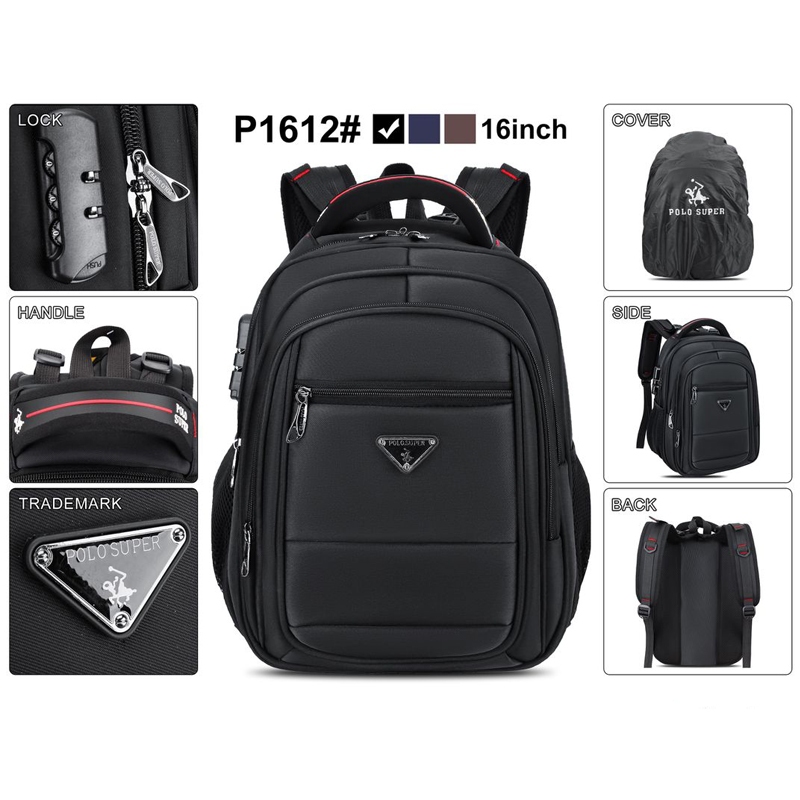POLO SUPER Tas Pria Ransel Laptop 16 inc Backpack School Import Tas Sekolah Polo Ransel ABG Anti Air
