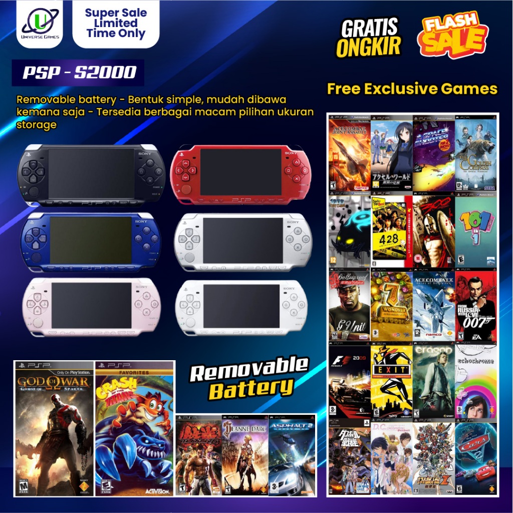 PSP Sony Second Hen 3000 / 2000 / 1000 - Konsol Game Genggam 8 Gb / 16 Gb / 32 Gb Like New Full Game Garansi 1 Bulan