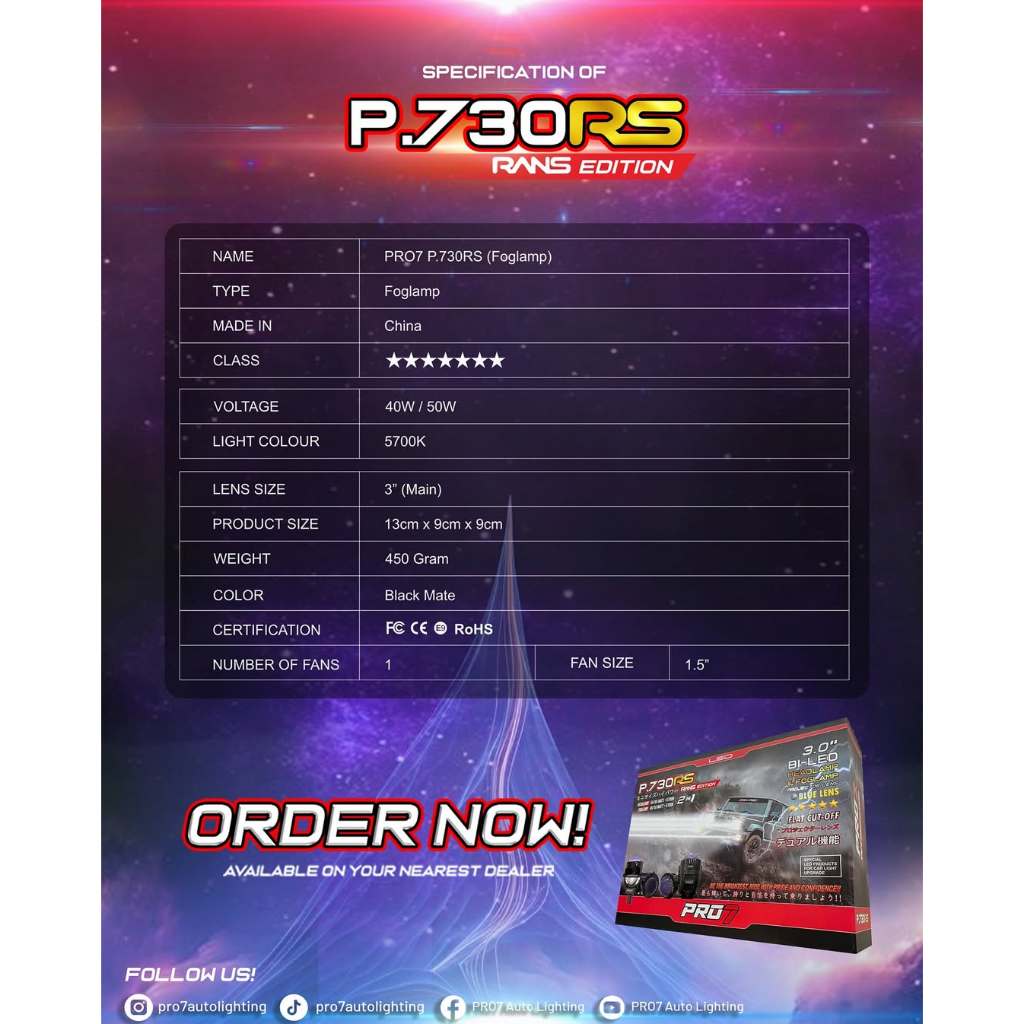 [GRATIS EXTRA KAOS] PRO7 x RANS P730RS / P.730RS / P730 RS HEADLAMP 3inch 55W/65W FOGLAMP 3inch 40W/50W BLUE LENS SUPER BILED PROJECTOR RANS COLLAB
