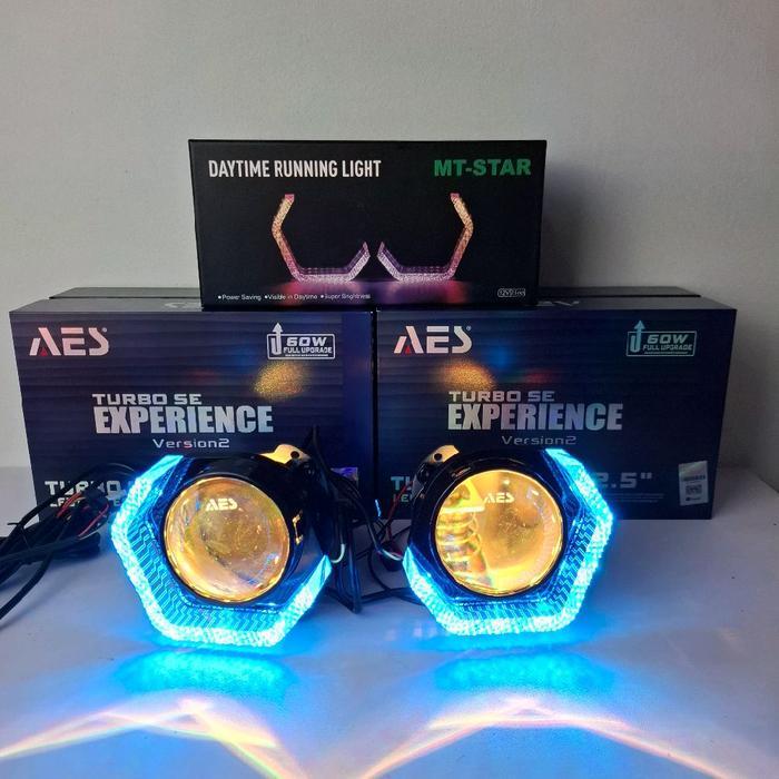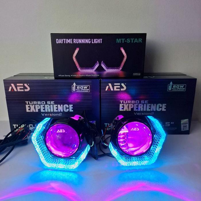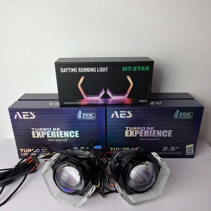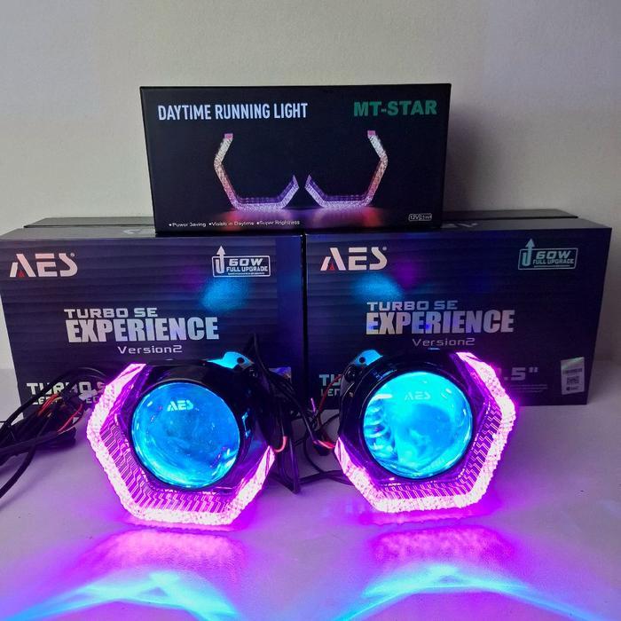 SEPASANG PAKET LENGKAP BILED AES EXPERIENCE V2 + SHROUD HEXA RGB 2,5 INCI UNTUK MOTOR DAN MOBIL. Car Lampu - merah