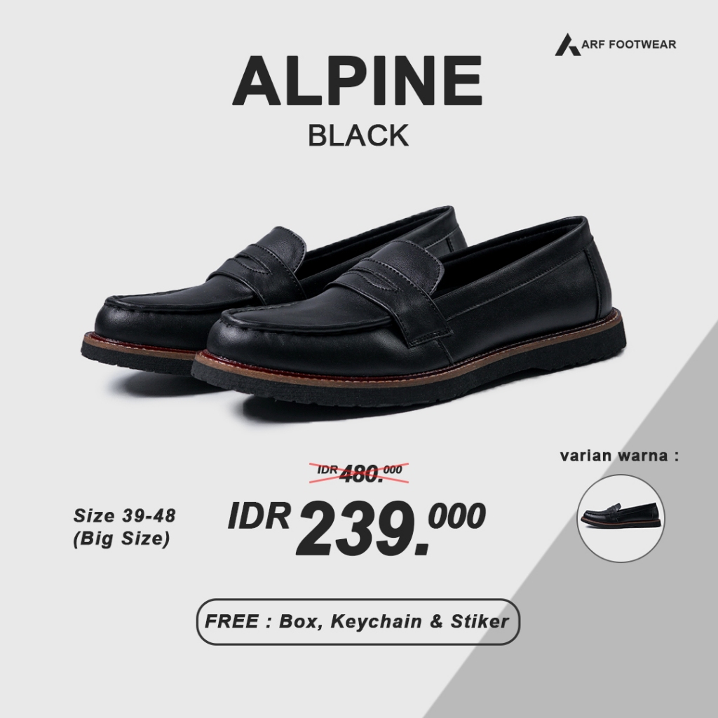 ARF Alpine Black Sepatu Loafers Slip On Formal Kulit Pantofel Hitam Pria Wanita Kerja Kantor Kondangan Casual Original Shoes