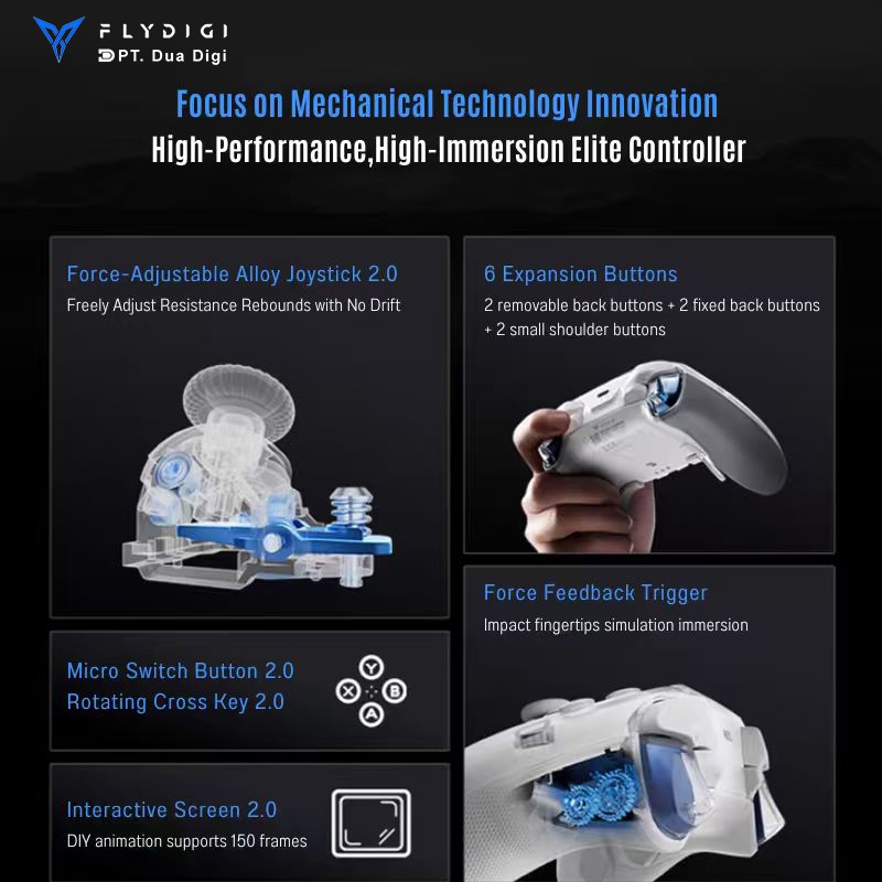 FLYDIGI Apex 5 Wireless PC Controller Adaptive Trigger Forceflex Joystick 2.0 Force Feedback Trigger