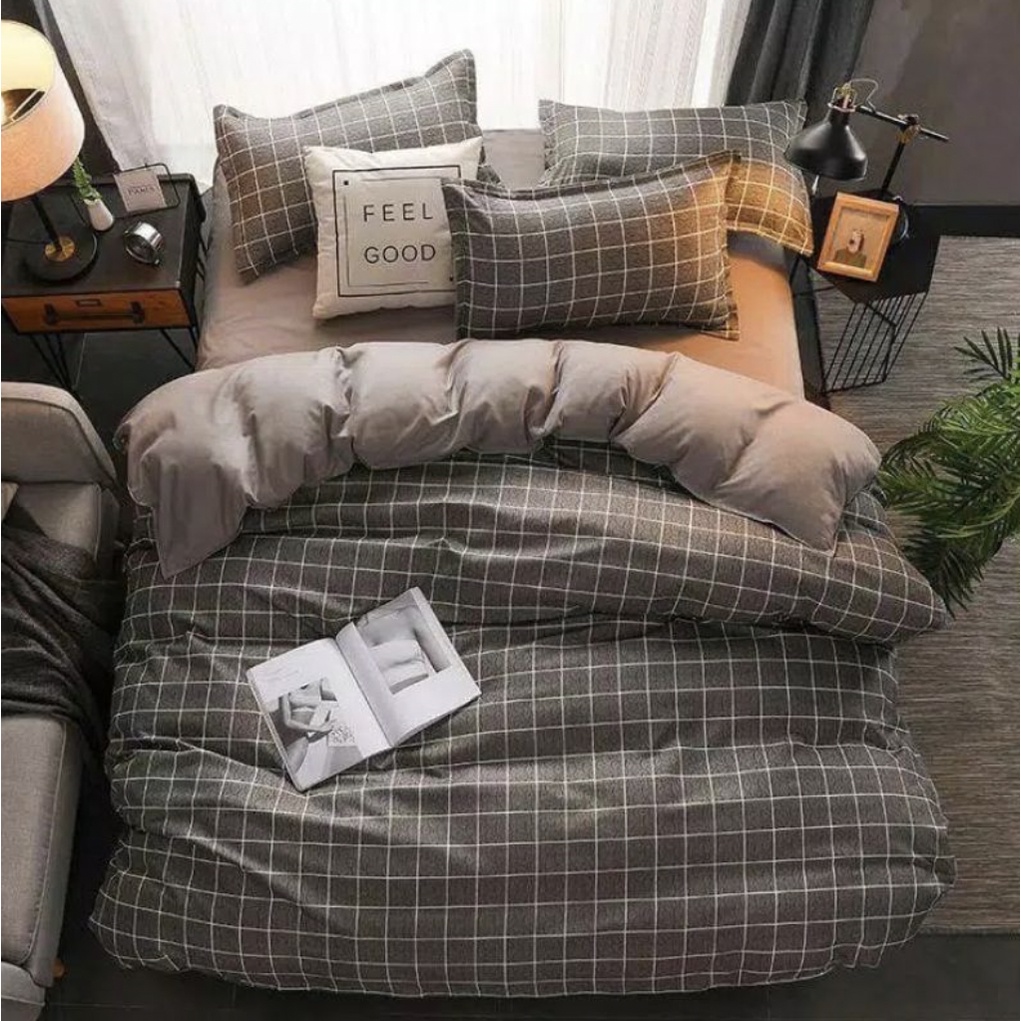 SUNGJAE BEDCOVER SAJA MOTIF AESTHETIC KOTAK-KOTAK HITAM ABU 200 230|180x230|160x230|140x230|120x210