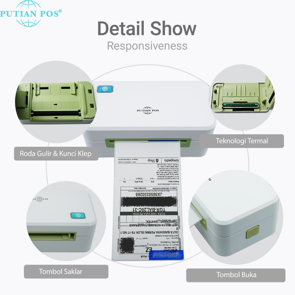 PUTIAN Printer Thermal Bluetooth - Alat Pencetak Struk Kasir Mini & Label Pengiriman, Support Bluetooth untuk Toko dan Bisnis Online,mini printer bluetooth