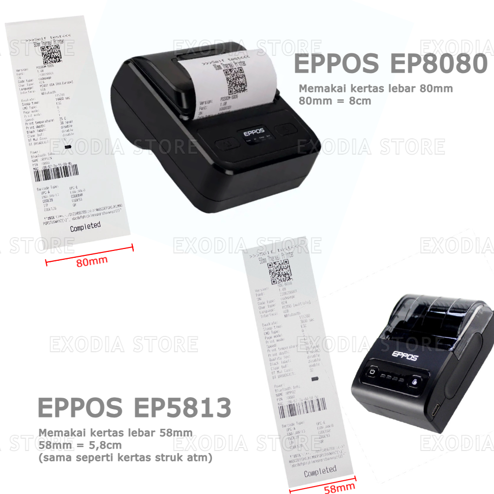 Mini Thermal Printer Bluetooth EPPOS EP5813 58mm & EP8080 80mm Portable Support Android & Windows bisa untuk Hp, Tablet, Laptop, Komputer