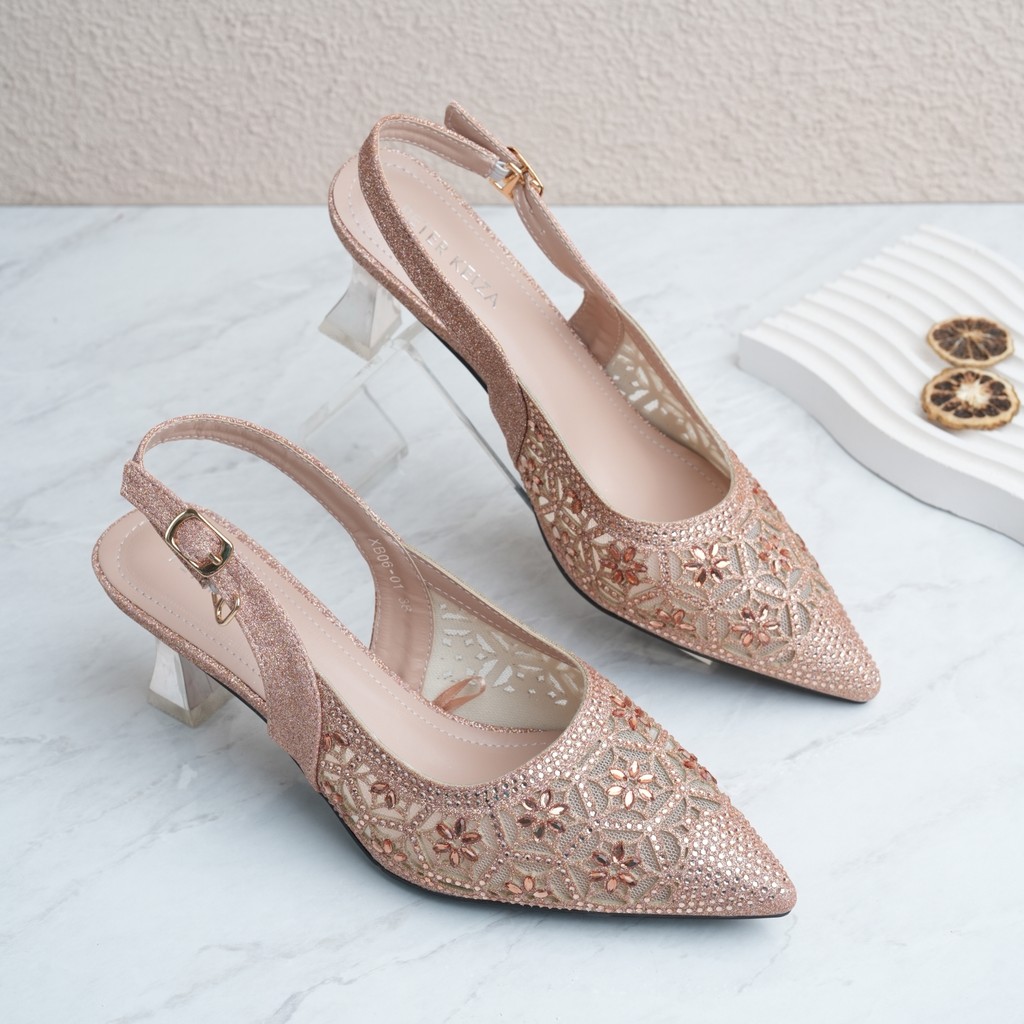 Peter Keiza Sepatu Sandal Slingback Wanita dengan Tali Belakang dan Aksesoris Permata XB06-01
