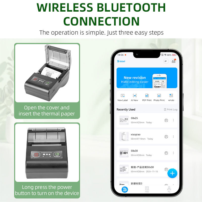 Toserba Gajah Kecil Printer Thermal Bluetooth USB 58mm Dukungan Laci Uang POS Sistem Thermal Printer 58mm Dukungan android/ios/Windows+3Roll Kertas Gratis