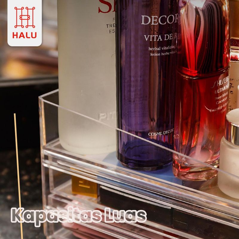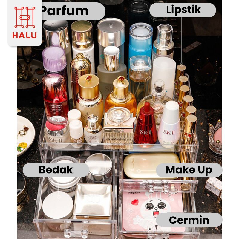 Halu Rak Kosmetik Acrylic 2 Tingkat Organizer Multifungsi Kotak Penyimpanan Makeup HRM302