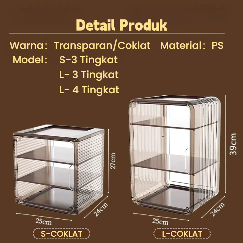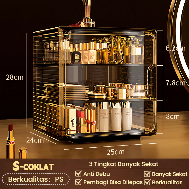 Rak Kosmetik Dengan Laci Anti Debu Tempat Make Up Skincare Rak Akrilik Multifungsi / Tempat Penyimpanan Dengan Tutup Acr