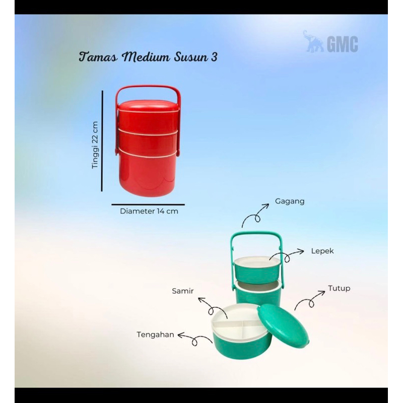 Rantang Makan Susun GMC 3 Susun Besar/Tinggi 30cm