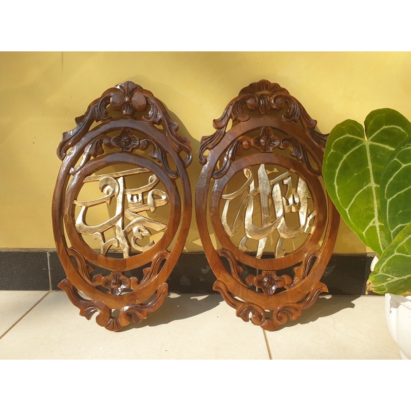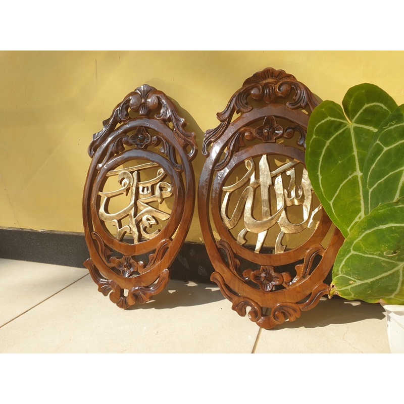 kaligrafi lafald allah dan muhammad ukir ukuran 40x25kayu jati