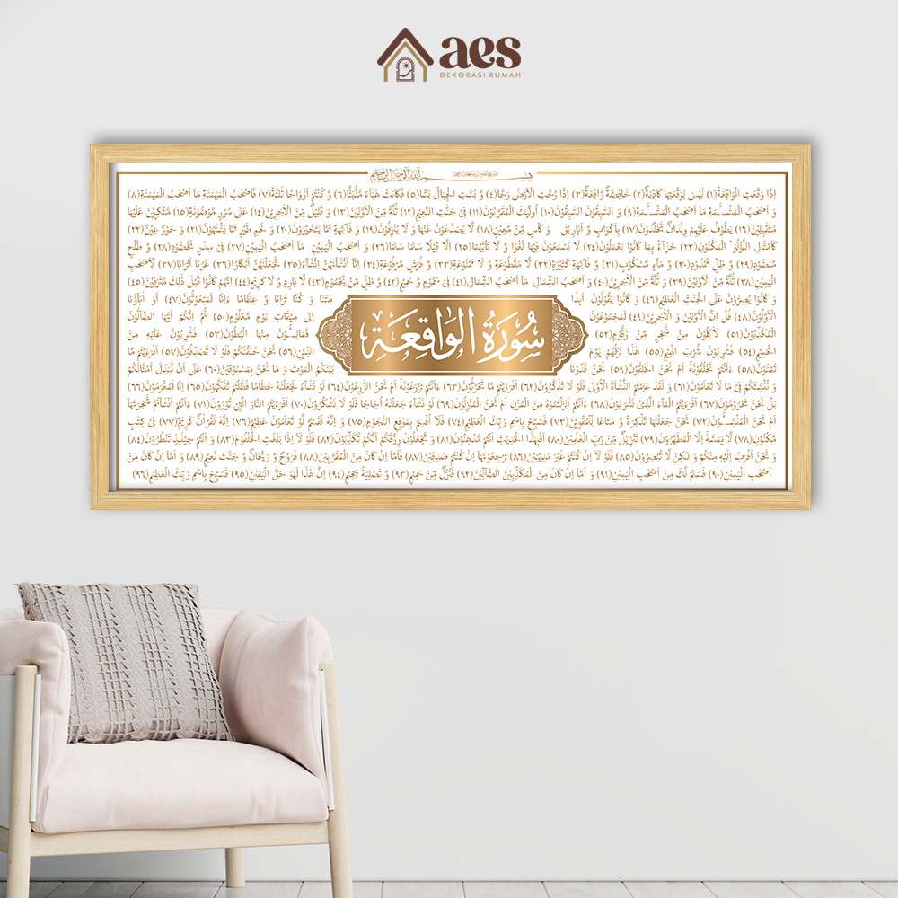 AES Kaligrafi Surat Al Waqiah Aesthetic Frame Jati Belanda 40x80 KS076 - Pajangan Hiasan Dinding Jumbo Besar Dekorasi Ru