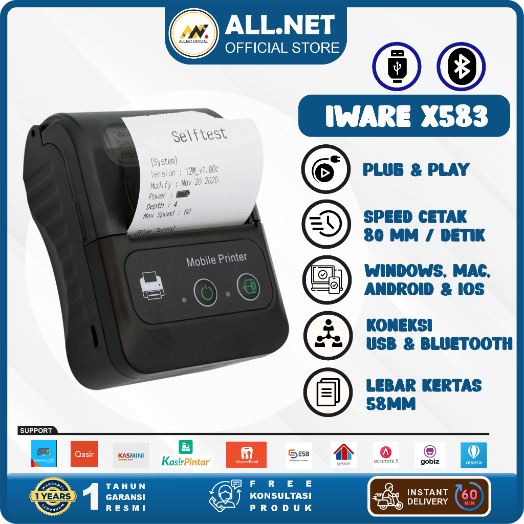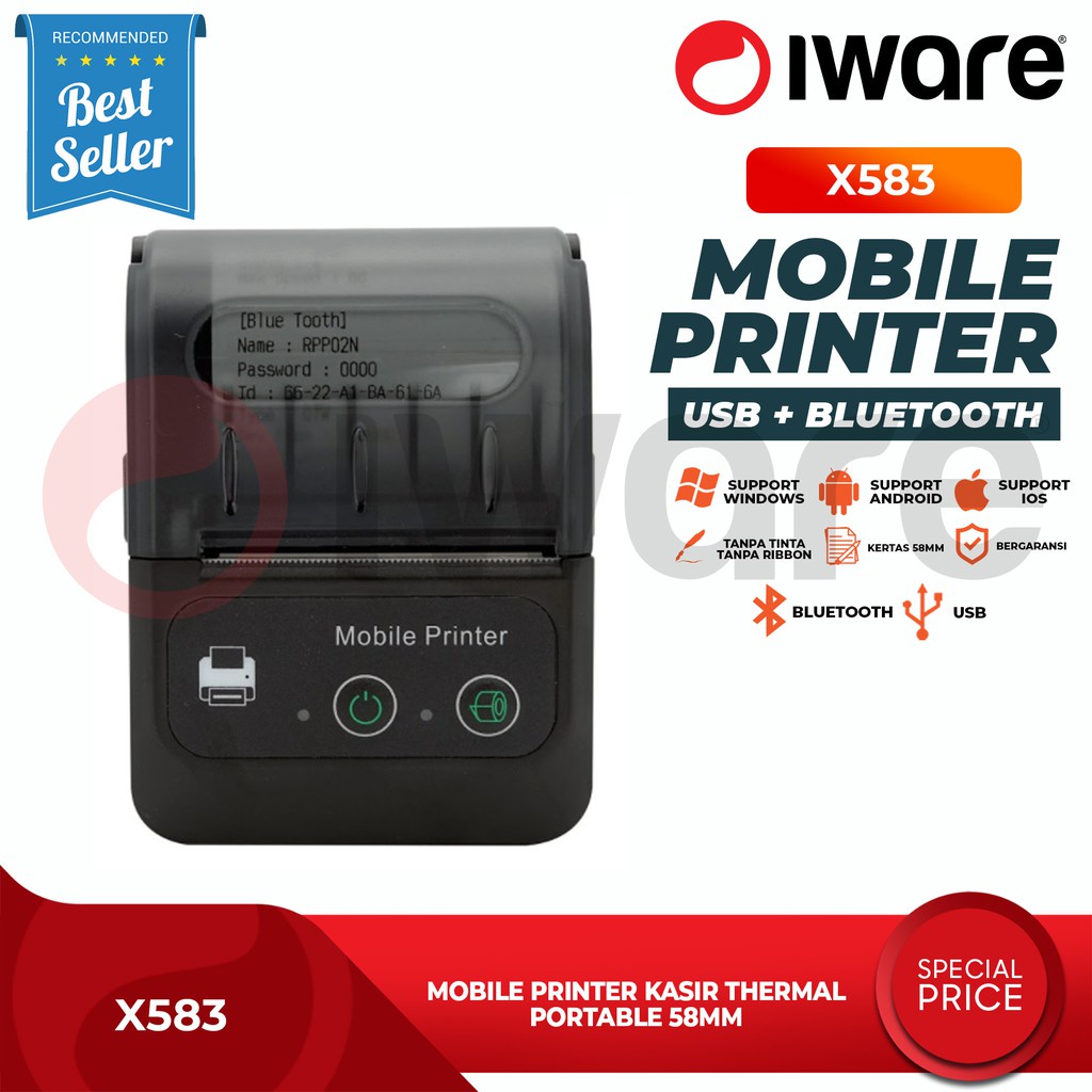 Printer Bluetooth Baterai Portable Mobile Thermal Struk Kasir/Ppob 58Mm Iware X-583 58MM ANDROID IOS