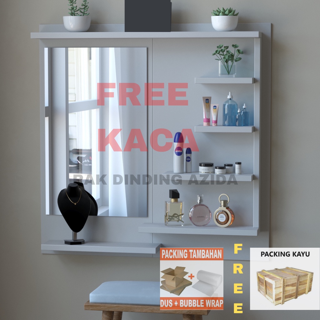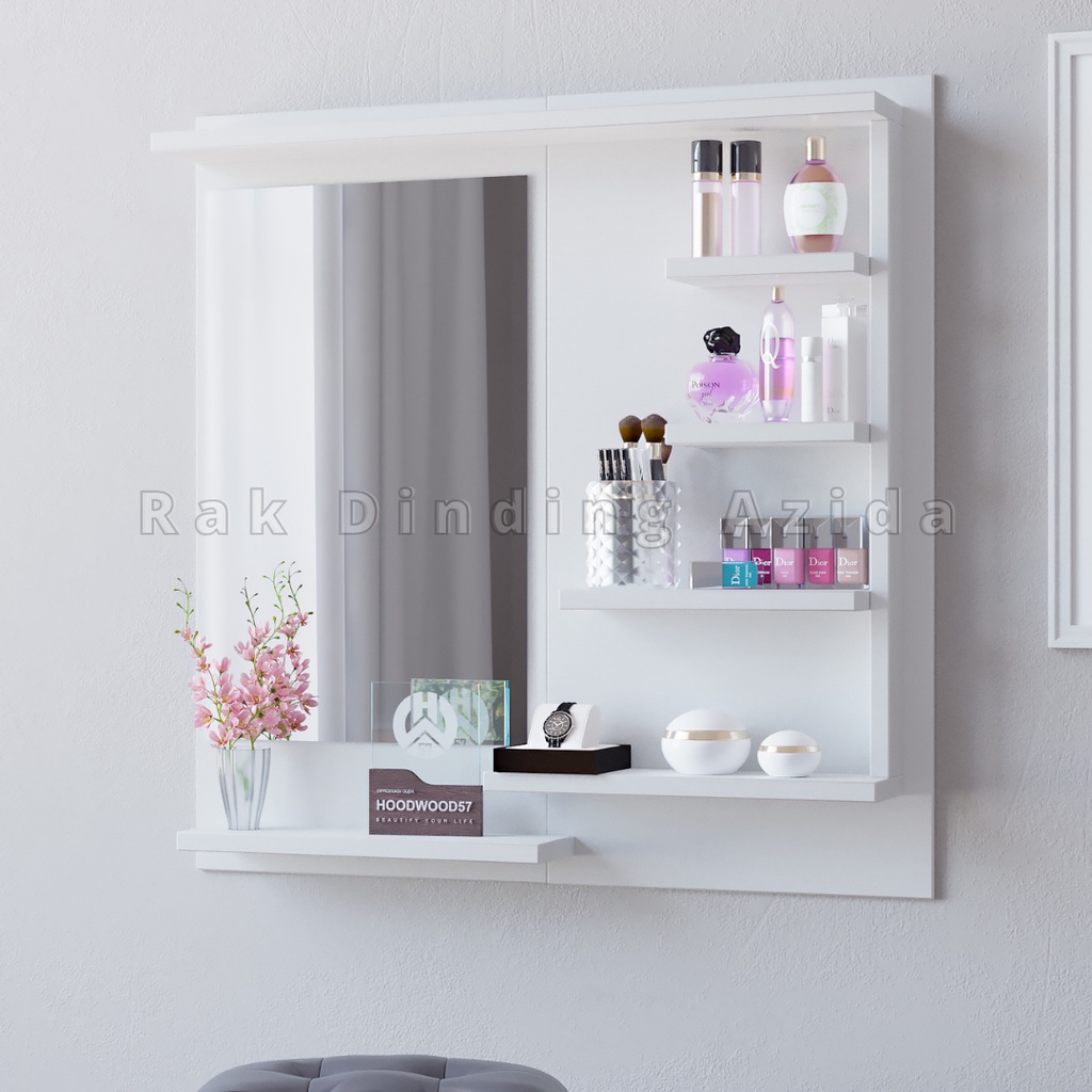 RAK RIAS DINDING KAYU RAK KOSMETIK GANTUNG KACA RIAS BESAR MINIMALIS RAK MAKE UP BESAR CERMIN AESTHETIC TEMPEL