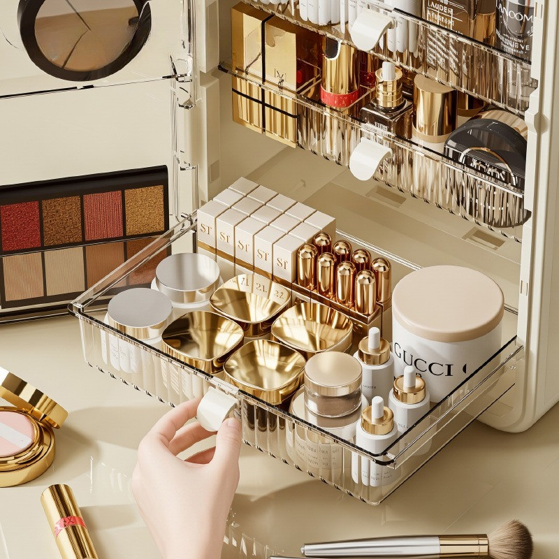 Vinnatsu Box Cosmetik Multi Purpose Cosmetics Shelf Dust Protection Storage Box Skincare Product Storage 3Petak Rak Kosm